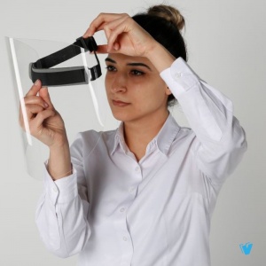 Hygiënisch masker met een flexibele en verstelbare band waardoor het vizier comfortabel op het hoofd past. Het is lichtgewicht en ook geschikt voor brildragenden.