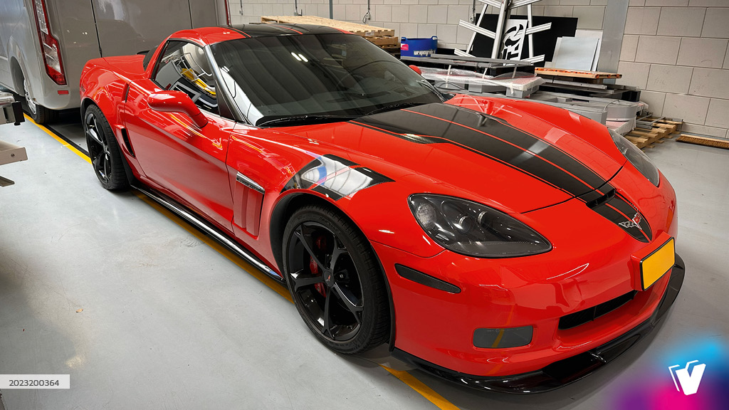 Corvette striping in zwart hoogglans in combinatie met grijs carbon