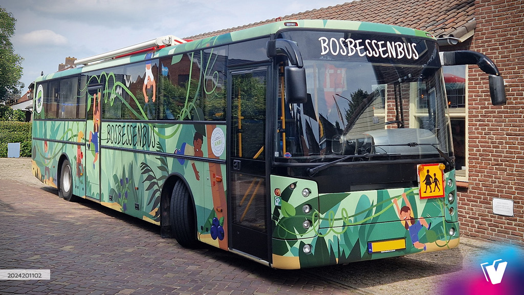 Opvallende bosbessenbus compleet voorzien van print.
