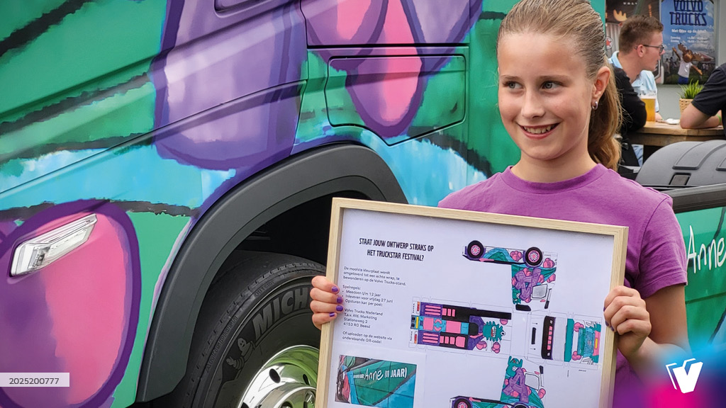 Volvo wrap met winnend ontwerp van de elfjarige Anne. Tekenwedstrijd die Volvo Trucks Nederland in samenwerking met Truckstar organiseerde.